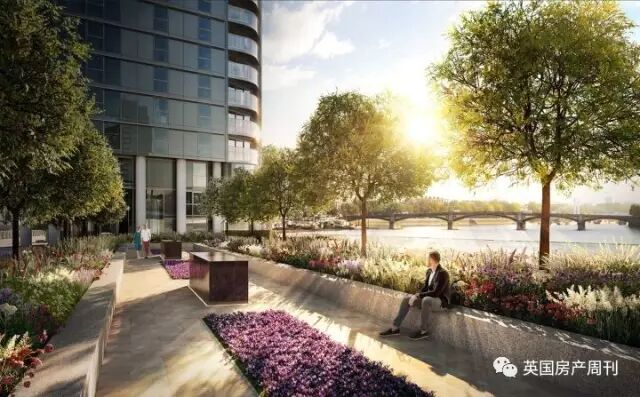 项目占地8.8英亩、拥有600米长的滨河区域,由享誉国际的设计师Terry Farrell爵士负责整体规划。2栋塔楼分别高37层和25层。靠近河边的底层建筑由景观花园围绕,可提供独具一格的滨河生活体验。