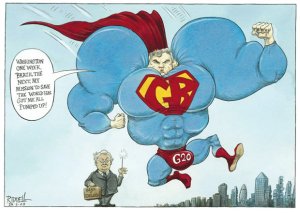 留存几幅关于峰会的新闻卡通,聊以回味。