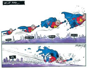 来自《泰晤士报》:超人布朗?一旁手执针尖的是反对进一步财政刺激计划的英国央行行长