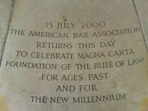 1957年,为了纪念这份公民自由、宪政民主的鼻祖文件,美国律师协会(American Bar Association)倡议捐助在Runnymede当年签署《大宪章》的地方修建了“大宪章纪念碑”。在此后的1971年、1985年和2000年等,美国律师协会多次重返故地,以各种形式纪念《大宪章》及其影响。
